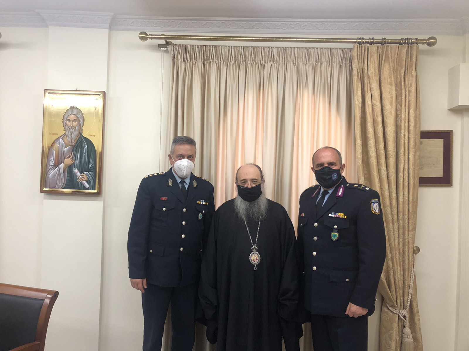 Ὁ Σεβασμιώτατος τους εὐχήθηκε ἀπο καρδίας τα δέοντα καὶ τους διεβεβαίωσε ὅτι θὰ τους συνοδεύη ἡ εὐχὴ καὶ ἡ προσευχή του. Ἐπίσης εὐχαρίστησε τὸ Σῶμα τῆς Ἀστυνομίας γιὰ την προσφορά του στην πόλη μας καί γενικώτερα στήν κοινωνία καὶ γιὰ την ὡραία συνεργασία μὲ την Ἐκκλησία, προς ὄφελος τοῦ κοινωνικοῦ συνόλου.