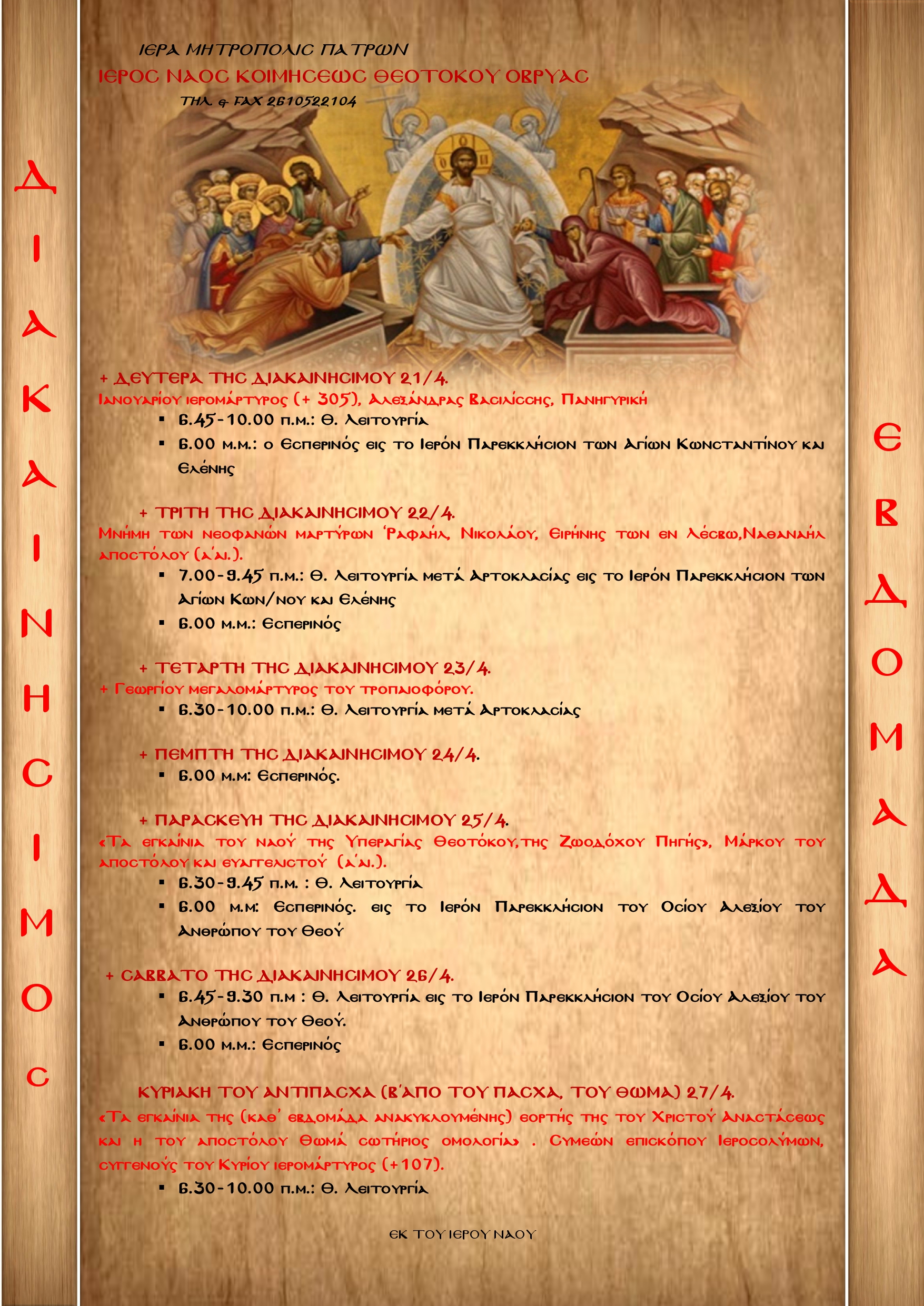 Τα νεα μας 5 Απριλίου 202527 Μαρτίου 2025 Πρόγραμμα Διακαινησίμου Εβδομάδος Posted By: Ι.Ν. Κοιμήσεως Θεοτόκου Οβρυάς 0 Comment