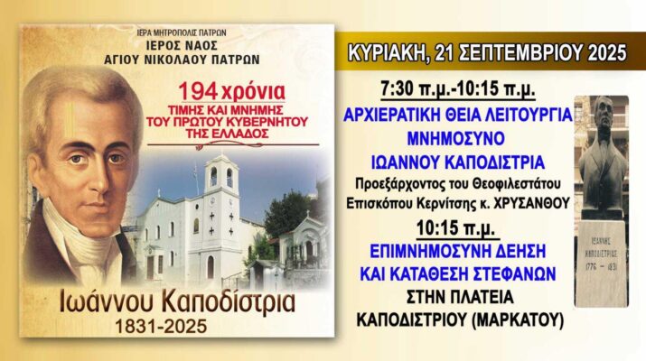 Μνημόσυνο τοῦ Θεοδώρου Κολοκοτρώνη στήν Πάτρα καί δέηση γιά τήν κατάπαυση τῶν σεισμῶν, στήν Θῆρα.